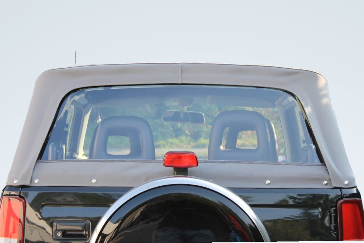 - Die Heckfensterscheibe Ihres neuen Suzuki Jimny Verdeck ist mit Reissverschluss mit zwei Schieber versehen, so ist das einfache öffnen von beiden Seiten gewährleistet.
